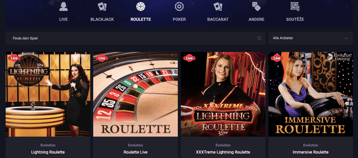 - Immersive Roulette ➞ eine hervorragend umgesetzte Live Roulette Version von Evolution Gaming.