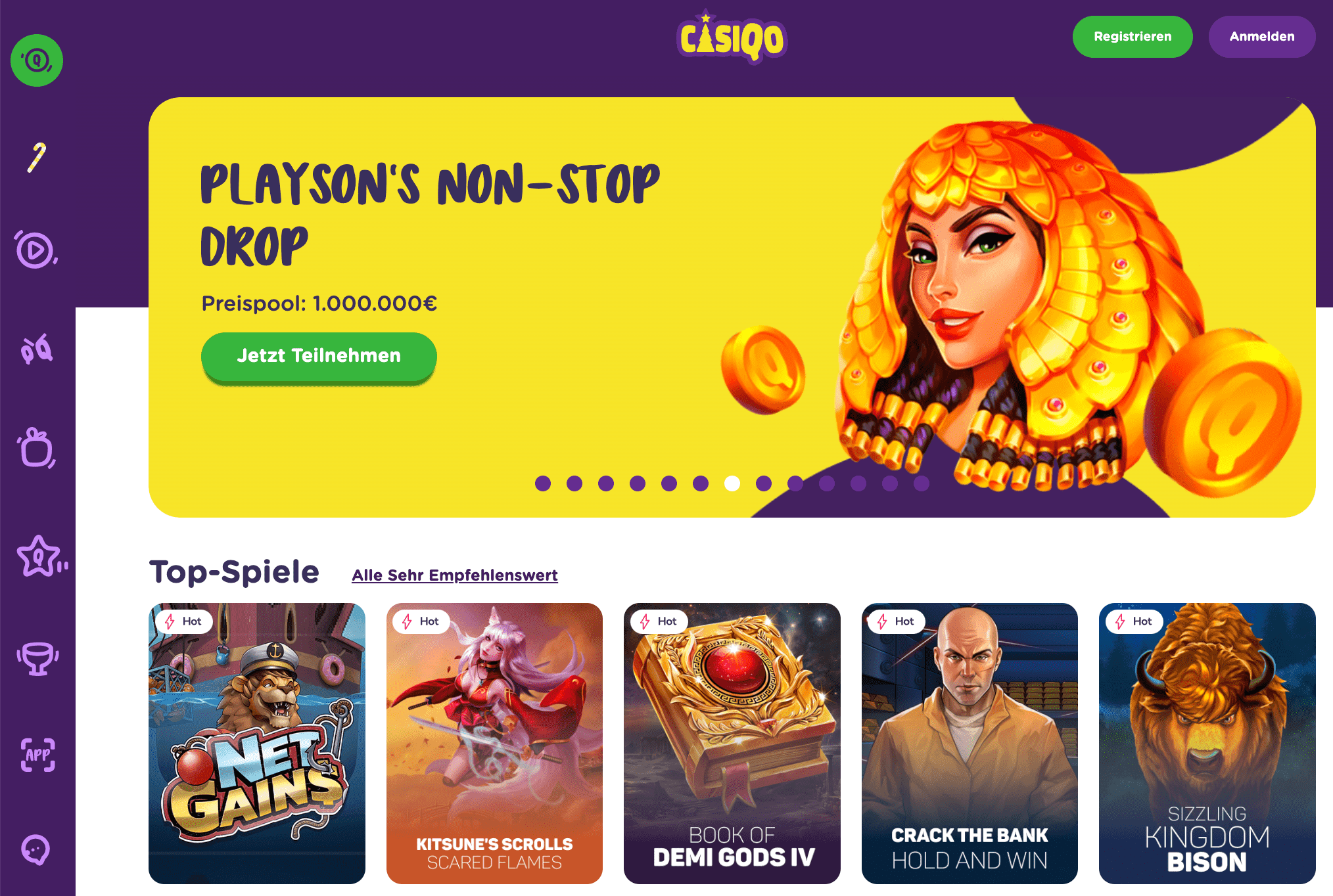 Casiqo ist eine brandneue Plattform, die eine breite Auswahl an Spielen bietet. Das Online Casino stellt Tausende von einzigartigen Glücksspielen zur Verfügung, darunter Spielautomaten, Klassiker wie Karten- und Tischspiele und Live Dealer Spiele mit großer Vielfalt.